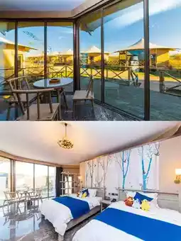 Located in Wenquan County, adjacent to Sailimu Lake; each room has a private balcony and a starry sky glass roof🌠; the hotel also offers a cloud shirt bar, hiking, horse riding, and cloud valley afternoon tea for a rich experience.