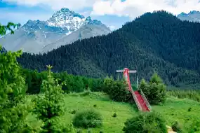 Rush to the sky grassland! Horseback ride through Snow Lotus Valley (80 RMB/hour), drink freshly milked cow’s milk in a yurt, and while waiting in line at the popular bridge📸 turn around to shoot the creek and spruce trees behind for even better photos!