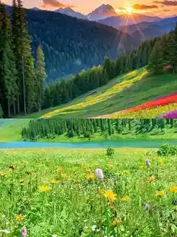 Snow-capped mountains and grasslands in one frame, lavender fields, and the sunset over winding rivers.