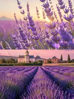 Highlight: Use contrasting colors (purple lavender + green grassland) to catch the eye.