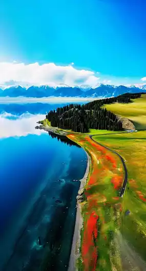 Sailimu Lake: At sunrise, the lake surface turns pinkish-blue; the South Gate boardwalk is perfect for shooting snow mountain reflections.
