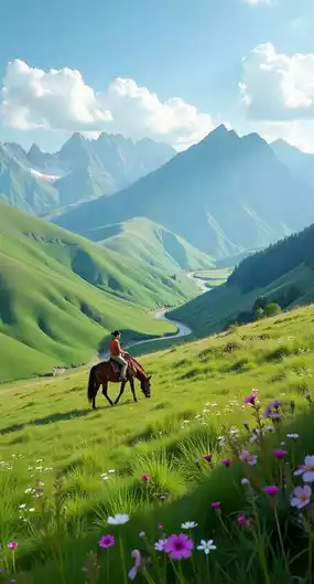Valley Grassland: Suitable for horseback riding (80 RMB/hour), visit grassland tribes to taste hand-pulled lamb.