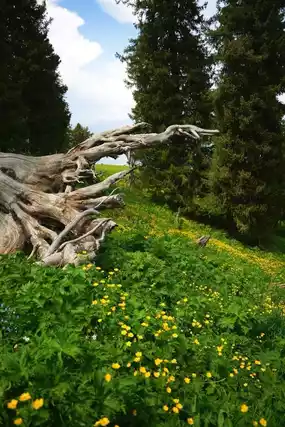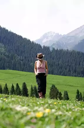 Ride a horse into the same wild mountain scenery as in "Heidi, Girl of the Alps"! The 4 PM sunlight is the best filter. Walk through the spruce forest to the popular small creek bridge, frame the triple romance of "snow mountains + wildflower carpet + stream" with a wide-angle lens—every snap looks like a healing movie poster.