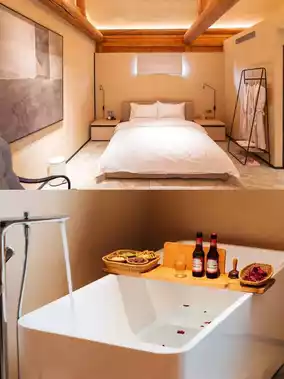 🛏This homestay is known for its unique design style and cozy atmosphere. The rooms are designed in a simple and stylish manner, equipped with large floor-to-ceiling windows, filling the room with warm and bright sunlight.😉Each room type has a different theme, with details like round bathtubs, swings, and bed canopies that make you fall in love at first sight.💘Highly recommended are the rooms with private hot springs, where the water quality is excellent, leaving your skin smooth and tender, as if you were in a Southeast Asian resort.🛀