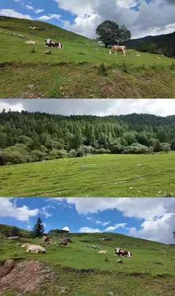 ▫️Widest lawn area (with grazing cattle/horses + mountain backdrop)