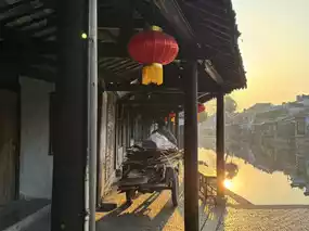 After battling the biting cold and wrestling with my alarm clock, I finally dragged myself out of bed at 5:20 am—determined to catch the legendary sunrise over Xitang’s watertown. To my delight, the best vantage point was just a five-minute walk from my homestay, as if the universe was rewarding my effort. The pre-dawn mist hovered over the canals, softening the glow of red lanterns still lit from the night before. Then, as the first golden light spilled over the horizon, it set the tiled rooftops and stone bridges ablaze in warm hues, their reflections rippling like liquid fire on the water’s surface. The chill of the morning faded into awe—here was Xitang at its most magical, quiet and untouched, a scene straight out of a dream. In that moment, every shiver and sleepy groan felt worth it.