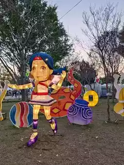 The 2025 Taichung Central Park Lantern Festival kicks off in grand style, blending traditional lanterns with innovative technology to create a dreamy festive atmosphere. The main lantern show features music and dynamic lighting that captivates the audience, while lanterns shaped like skewers move rhythmically to the music, adding a playful touch. The entire exhibition area is illuminated, immersing visitors in a visual and sensory artistic journey. Strolling through the festival feels like entering a magical world of light and shadow, offering a profound experience of Taichung's diverse cultural charm and leaving unforgettable festive memories.