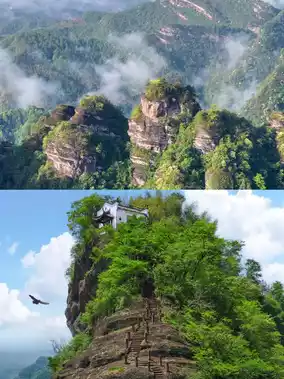 Day ❷: Take the cable car up the mountain in the morning to start a sightseeing and hiking tour of Qiyun Mountain. Specific route: Yuehua Cableway ➠ Wangxian Terrace ➠ Dongtianfudi ➠ Yuehua Tianjie ➠ Xiaohutian ➠ Yuxu Palace ➠ Wulao Peak ➠ Fang La Village ➠ Danxia Gallery ➠ Summit ➠ Cableway return trip. The whole journey takes about 5 hours and you can visit all the essential attractions.