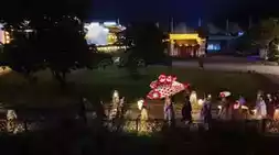 An immersive live landscape performance with lasers projecting Taoist stories on the cliff walls. The best viewing spot is on the stone steps of Daode Square.