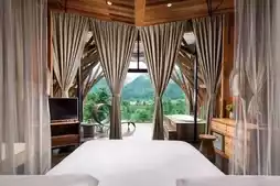 🏯 Embroidered Building Treehouse: Vintage M-shaped style full of charm, the open-air soaking pool is pure bliss