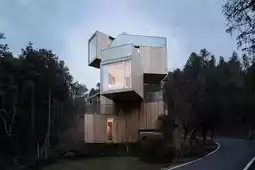 🧩 Building Block Treehouse: Over 500 glass panels create a futuristic look, with a hollow design and real trees growing through!