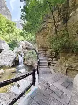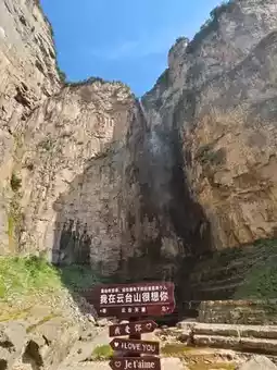 Yuntai Mountain is famous for its remarkable mountains, with 36 peculiar peaks and more than 20 natural caves. The main peak, Zhuyu Peak, has an elevation of 1304 meters. Standing on the summit, one often sees the clear blue sky above and thousands of miles of floating clouds below. The mountains seem to drift and wander above the clouds, resembling a fairyland. After the rain clears, one can gaze far into the distance at the Yellow River's flowing waters or look down upon the sheer cliffs and canyons among the mountains. Water -- another distinctive feature of Yuntai Mountain, with countless springs, pools, and waterfalls. It is known for the saying 'every three steps a spring, five steps a waterfall, and ten steps a pool.' The most famous is the 'Yuntai Waterfall,' with a drop of 310 meters, known as the highest in China and the second highest in Asia. The waterfall is like a raging river from the heavens, unstoppable from above, and when it hits the ground, it creates a misty rain that sprinkles and sprays all around. It is truly a wonder of the world.