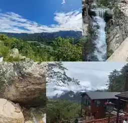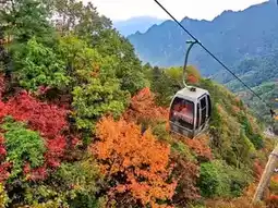Old Border Ridge. It is located in Xixia County, Nanyang City. It is a 5A-level tourist attraction. It is the dividing line between China's north and south climates and the watershed between the Yangtze River Basin and the Yellow River Basin. Laojieling includes major scenic spots such as the watershed, Jiaojiao Peak, Goddess Peak, Funiushan Goddess, Welcoming Pine, Child-Giving Guanyin, Camel Peak, and Sawtooth Peak. It integrates strange peaks, strange pines, strange rocks, forests, sea of clouds, wooden houses and other landscapes. "A drop of water from the sky, half enters the Yangtze River and half enters the Yellow River." Laojieling is like a green barrier descending from the sky, between the Yangtze River and the Yellow River. With green mountains and vast forests, it can be called a paradise on earth. The scenic area opens at 8 o'clock. We bought tickets for the scenic bus and the upward cable car. The round trip fare for the scenic bus is 40 yuan; the cable car is 70 yuan one way, and 138 yuan for a round trip. The staff said there is a discount if you buy the scenic bus and cable car together, and the actual payment is 95 yuan. The Jingjiao bus is an open-top bus. The temperature was low in the morning and I felt very cold after the bus started.