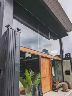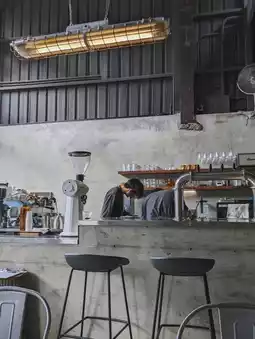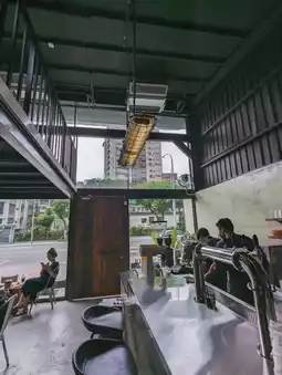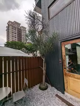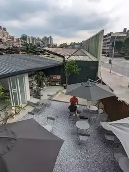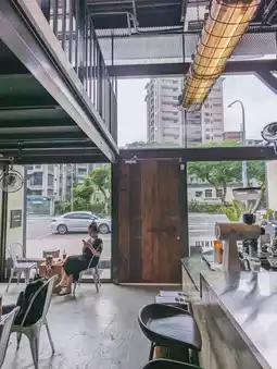 Negative times negative equals positive, the new little shop on Kangning Street in Xizhi, De Zheng Coffee, with its cement walls and tin houses, cold metal iron pieces, and thick wooden doors, is a full-on modern industrial-style decoration. Right by the bustling main road, it creates its own unique space, which is very beautiful.