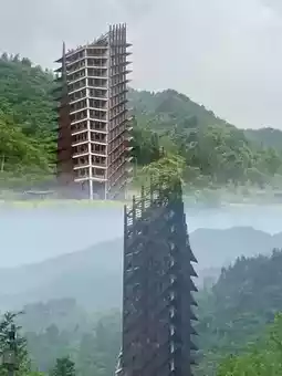 Zhaizhai Viewing Platform: Take a panoramic view from top to bottom. The stilt house complex is faintly visible in the green mountains and rivers, creating a perfect ink painting!