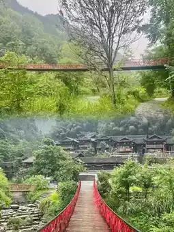 After twisting and turning along the mountain road, a scattered group of stilt houses suddenly appeared before my eyes. With their blue-tiled wooden walls, wisps of smoke, and the sounds of chickens and dogs, I instantly felt like I had traveled back a hundred years! The stilt house complex here is extremely well-preserved and is known as a "living fossil of Tujia architecture." Even the roof tiles are handmade by old craftsmen!