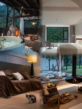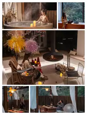 The homestay has a variety of public areas, including a lobby bar, restaurant, children's play area, entertainment room, hot spring area, outdoor sunken leisure area, meeting room, and bar. In the morning, guests can enjoy a hearty breakfast in the restaurant to start a wonderful day. The outdoor hot spring pool under the wooden house with a real fireplace is a great choice for a winter bath. In their spare time, guests can also sit in the outdoor leisure area with friends, chat, and enjoy a pleasant time.