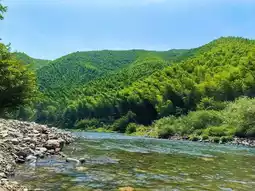 Thrilling rafting through alternating rapids and calm sections. Features natural rock slides (wear long sleeves/pants to avoid scrapes).