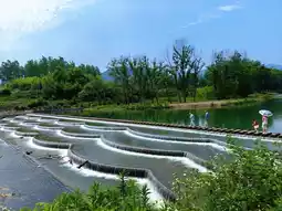 Man-made terraced dam with gentle currents – perfect for wading in shallow areas.