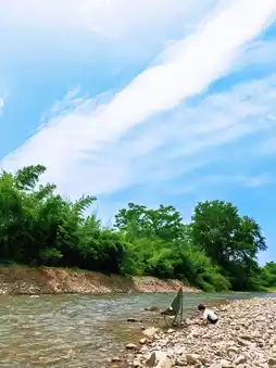 Another entrance to Xijin Wild Ferry, featuring wide clear waters perfect for rock collecting. Shaded areas nearby are ideal for tent camping🏕️