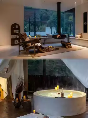 The best part is the rooftop wild private hot spring! The 40°C hot spring water bubbles with steam; soaking in it during the blue hour, surrounded by mist, you see the mountain shadows reflected in the water when you look down, and slowly brightening stars when you look up. The 360° unobstructed mountain views are right before your eyes! After soaking, wrap yourself in a bathrobe and head to the nearby tea pavilion to listen to the white noise of the mountain stream and the gentle calls of night birds, while gazing at the village lights in the distance. This is the true way to enjoy a vacation✨