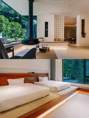 ✅️Every detail of the guesthouse reflects the designer's ingenuity. You can enjoy the clouds, greenery, hot springs, and stars in the mountains, enjoy the clouds☁, bamboo scenery🎋, and tea🍵.