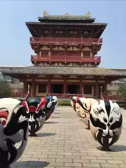 The "One Axis" takes the Chunqiu Tower, Prime Minister Cao's Mansion and other historical and cultural sites as the core to form a 1.3-kilometer-long Cao Wei central axis running through the north and south. Chunqiu Tower, also known as Daye Pavilion, was once known as Guan Gong's Residence, Guan Wang Temple, and Guandi Temple. It is a landmark building in Xuchang and a core attraction of Cao Wei Ancient City. It is located at the south end of the Central Axis Pedestrian Street. It was built in the Yuan Dynasty and has experienced It has been repaired many times and is a Ming and Qing style architectural complex with a height of 36 meters. It is listed as one of the "Five Great Guan Temples". The 15-meter-high seated statue of Guan Gong is enshrined in the building, which is the tallest statue of Guan Gong in the country; Prime Minister Cao's Mansion, It is one of the most representative buildings in the ancient city of Cao Wei. It is located at the north end of the Central Axis Pedestrian Street. It is a complex of buildings imitating the Han Dynasty. It was the office of the then Prime Minister Cao Cao and the center of Cao Wei's political power. Visitors can learn here about Cao Cao's political, economic and cultural achievements during the Three Kingdoms period (in fact, as a group of antique buildings, there are only exhibition boards and models for introduction, and there is almost nothing to see. On the contrary, the experience of the Tibetan Soldier Cave is stronger).