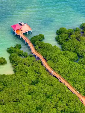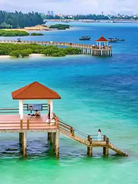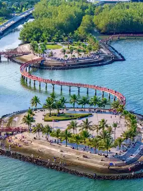 The huge coral reefs and towering lighthouse complement each other beautifully. It’s recommended to visit at sunset when the evening glow dyes the entire sea orange-red—truly breathtaking! This spot is also the dividing point between the Qiongzhou Strait and the Beibu Gulf, where you can experience the amazing feeling of “standing with one foot in two seas.”