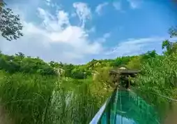 Trees, stone pools, hills, waterfalls, wooden bridges, quiet and beautiful, the whole thing is green🌲, I love it🥰