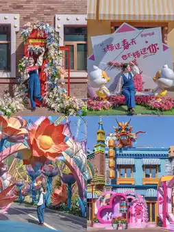 3⃣️ Taking photos in the candy-colored street area at the entrance is very photogenic, and many spring flower🌺 check-in installations have been set up
