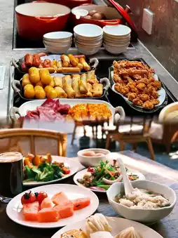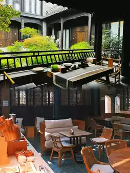 Breakfast🍳 is in another courtyard opposite the lobby, the taste and portion are standard. Their toiletries include mouthwash, earplugs, and steam eye masks, which other places don't have. The snacks and drinks🍹 are also better and more abundant. Some of the water is natural water from Bama💧, but the toilet🚽 is not a smart toilet.