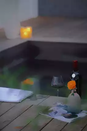 Take a dip in the private hot spring at night in the flickering candlelight