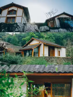 🌸And at the foot of Mengding Mountain is Huajiantang·Chamasi, which is the best place to relax and vacation. It seems to be a continuous hidden mountain village built by the mountains in Jin Yong's martial arts world. On the half-slope of the mountain, there are all scattered and orderly independent courtyards, with black tiles and white walls, wooden beams and stone bricks.