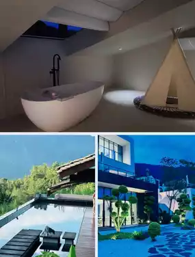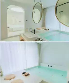 Whether in the room, soup pool, or the corner of the stairs, the pure color matching with the scenery can always make a big picture.