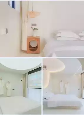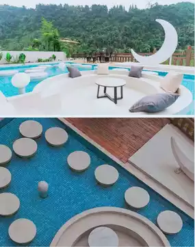 2 The interior is an art space dominated by Chaji wind design. The front desk is pure white and only awakens the level with different lights. At night, the crescent moon rises by the pool, with the round moon light in the pool, dreamy and mysterious, and instantly feels like stepping into a fairy tale world.
