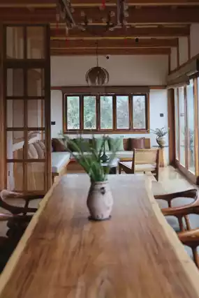 Listening to the chirping of insects and birds, sipping tea under the eaves while gazing at the mountains,