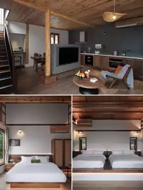 Caoyan Shushe's architecture, crafted by a renowned design team, features a harmonious wooden structure, free of any unpleasant odors, that blends seamlessly with the surrounding tea mountain scenery. Each room boasts large windows, offering picturesque views no matter when you draw back the curtains. The small courtyard terraces are also perfect spots for taking photos.
