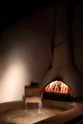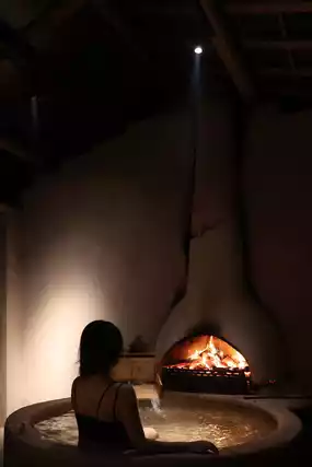 Highlight alert: the stunning in-room private hot spring! Light your own firewood and watch the flames dance 🔥 Soak in the steamy pool while gazing at the mountain views—this is raw, unfiltered romance!