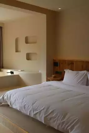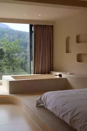 The rooms feature ultra-soothing wabi-sabi style, with floor-to-ceiling windows that just *get* me. Open the curtains to lush greenery 🌿 or layered mountain vistas—embrace nature right from your bed! The plush mattress and lull of crickets will melt all your stress away 💤