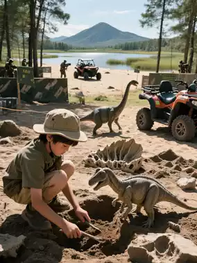 • Haizishan Dinosaur Adventure: Become a little archaeologist digging dinosaur fossil models, participate in forest CS battles, and drive ATV dune buggies through wetlands (ages 6+). In Peacock World, hundreds of blue peacocks roam freely; kids can feed them by hand and watch their tails fan out.