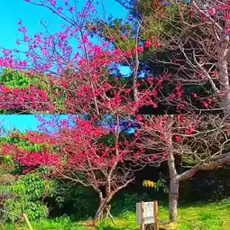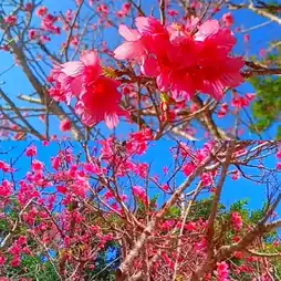 A park for cherry blossom viewing in Okinawa. The cherry blossoms in Okinawa bloom from January to February. During the cherry blossom season, the trails are lined with famous cherry trees. The environment is quiet and suitable for flower viewing, which makes you feel relaxed and happy. You can enjoy the cherry blossoms while taking a walk, and it is a good place to take photos. The view from the top of the mountain is breathtaking.