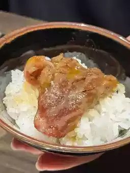 Large sirloin with a lot of impact, mixed with egg yolk, on rice