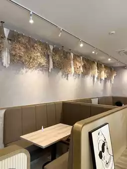 The shop is decorated with dried flowers and is stylish.