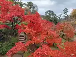 This picturesque Japanese garden is enveloped in the deep crimson of nature. In addition to maples, you can also enjoy the gradient colors of the Enkianthus shrubs.