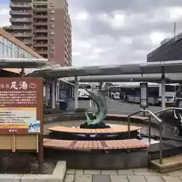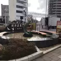 At the south exit of JR Yaizu Station, there is a foot bath at "Yaizu Kuroshio Onsen," which is free to use. Kuroshio Onsen contains about half the salt of seawater and is a high-quality hot spring that is said to be good for health and beauty, including for those with a weak constitution. In the middle of the foot bath is a statue of a swordfish.