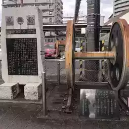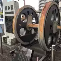 Also, just down the stairs you can see a steam locomotive wheel commemorating the 100th anniversary of the opening of the railway. #Shizuoka