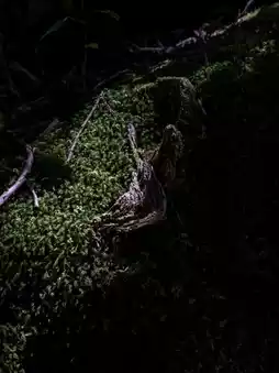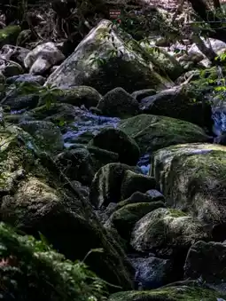 The trail includes some challenging sections, such as crossing cliffs and streams, but overall, it was relatively easy to hike. After about two and a half hours of walking with breaks, I reached the moss-covered forest. The area is filled with ancient tree stumps and rocks densely covered in moss, with a cool breeze flowing through the air.