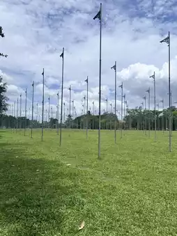 Phru Ba Koi Bird Park (Khwan Mueang Park) in Yala Municipality is another attraction within the Khwan Mueang Park. During the bird crowing festival, the competition is held here, attracting a diverse crowd. When there are no competitions, Yala residents like us often stroll, exercise, and run within the park. The atmosphere here is like a Swiss landscape, complete with pine trees, a river, and beautiful views. The air is fresh and healthy, and it's like a relaxing getaway. Picnic lovers can lay down a mat and enjoy the view. #Khwan Mueang Park Yala