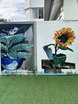 The Yala Municipality Bicycle Club is located within the compound of the Yala Youth Center. The club gathers on the grounds, and the club grounds feature beautifully painted walls for health enthusiasts to capture memories. The colorful and beautiful designs are a perfect backdrop for those who enjoy running at the Youth Center. If you've been jogging at the Youth Center, you can also take photos at the Yala Municipality Bicycle Club zone. A fresh and new garden. #Yala