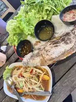 Friend Night Cafe Yala, Mueang District, Yala Province, is a popular evening cafe for young people. The atmosphere is inviting, and the flavors are average and not too flashy. The crispy shrimp salad is delicious, but the grilled fish sauce isn't that great. The drinks are okay, but overall, it's passable. It's a good place to chill and enjoy a snack.